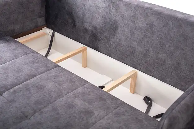 Собственная техническая доработка механизма дополнительно установленная система роликов позволяет легким движением одной руки разложить диван. При этом обеспечивает дополнительную защиту каркаса от повреждений.