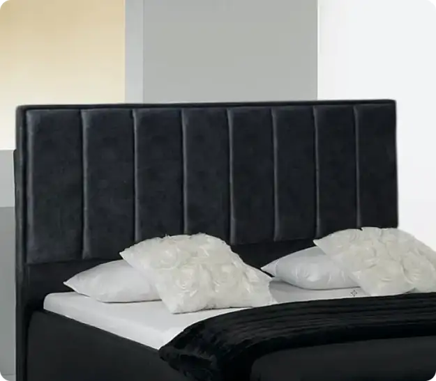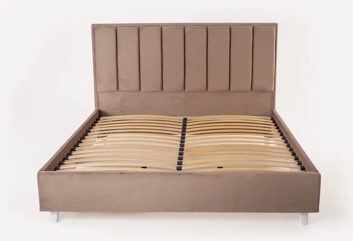 Роскошное высокое изголовьеКровать представляет собой элегантное и функциональное решение для современного интерьера. Она обладает высоким изголовьем, достигающим 1290 мм, что обеспечивает комфортную поддержку для спины во время чтения или просмотра телевизора. Изголовье выполнено из мягкого и приятного на ощупь велюра или рогожки, что придает кровати роскошный и уютный вид.
