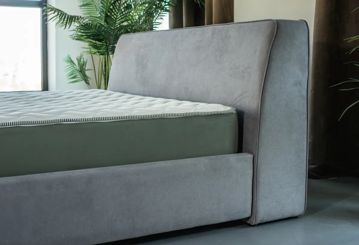 Умная конструкция и практичностьЗа кажущейся легкостью скрывается исключительная надежность. Кровать собрана на прочных болтовых соединениях и установлена на металлические опоры с покрытием "черный муар" (высота 60 мм), гарантируя устойчивость и долгий срок службы. Основание обеспечивает идеальную поддержку матраса (заглубление 65 мм) для вашего комфортного сна. Просвет над полом в 55 мм облегчает уборку, а оптимальная высота края царги (335 мм) позволяет с удобством садиться и вставать. Изголовье надежно закреплено на пластиковой опоре (15 мм), а его ширина создает удобную импровизированную полочку для мелочей. Обратная сторона выполнена из основной ткани, подтверждая внимание к деталям и качеству исполнения (Габариты: спальное место 160х200 см, общие - 173х237 см, высота изголовья 91 см).