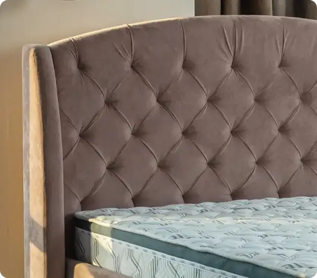 Классика и современность в одном изделииКровать имеет классический стиль в округлой формой и каретной стяжкой. Она оснащена высоким изголовьем с мягкой обивкой и декоративными пуговицами, что придает ей роскошный вид. Ножки кровати выполнены из прочного пластика, что добавляет современный штрих к общему внешнему виду. Общая форма кровати прямоугольная с аккуратными линиями, что подчеркивает её современный и функциональный дизайн.