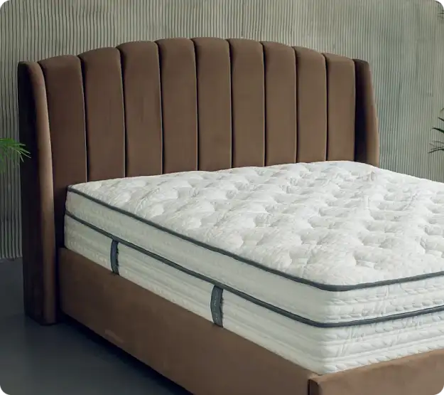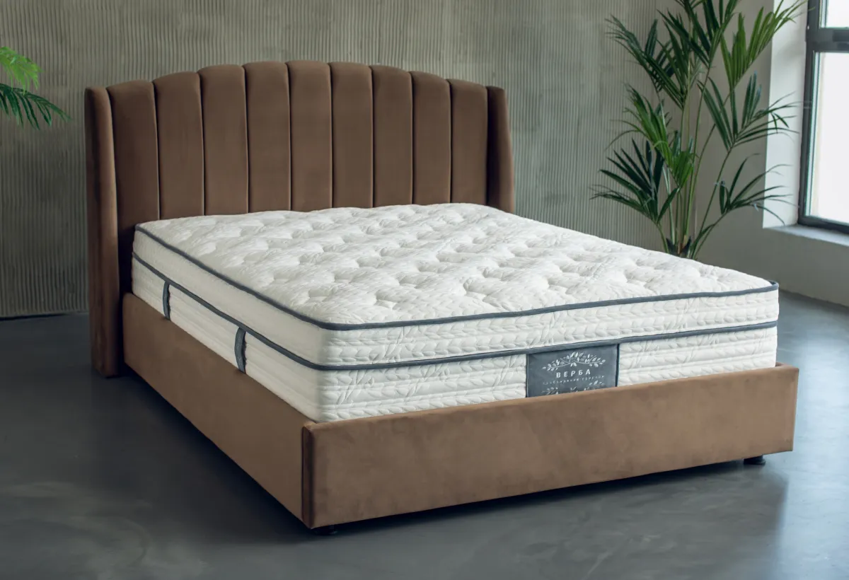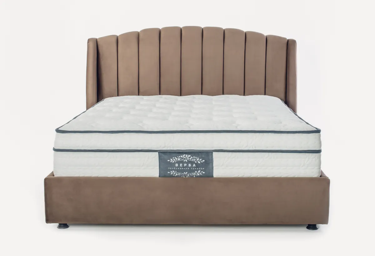 Характеристики кроватиКровать имеет высоту, которая делает её универсальной для матрасов любой высоты, особенно эффектно она смотрится с матрасами выше 25 см. Изголовье оснащено мягкой обивкой, выполненной вручную. Каркас изголовья надежный. Чехол крепится к царгам при помощи ложного канта, благодаря чему скобы остаются незаметными. Обратная сторона изголовья выполнена из прочного нетканого материала, что также добавляет эстетичности.