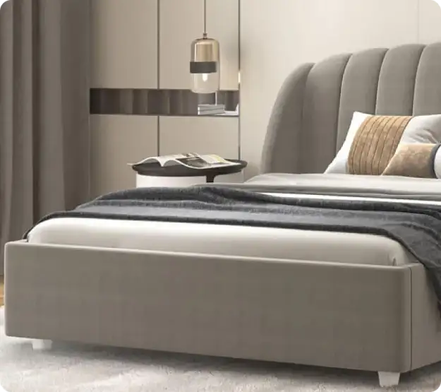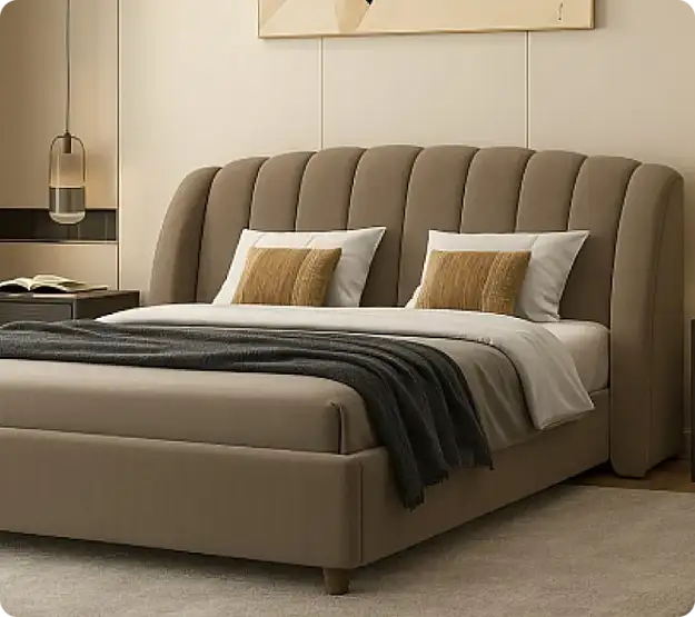 Классический стиль и комфорт в одном изделииКровать выполнена в классическом стиле с изогнутым изголовьем и вертикальными складками. Она оснащена высоким изголовьем с мягкой обивкой, что придает ей уютный и элегантный вид. Ножки кровати низкие и невысокие, что делает её визуально более легкой и изящной. Общая форма кровати прямоугольная с аккуратными линиями, что подчеркивает её современный и функциональный дизайн.