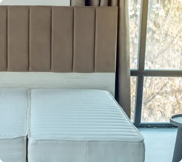 Это изголовье сочетает в себе мягкость и функциональность, создавая гармоничный акцент в интерьере спальни. Верхняя часть выполнена с мягкой обивкой — вы можете выбрать велюр для роскошной бархатистости или рогожку для натуральной текстуры и практичности. Цветовая палитра ограничена только вашими предпочтениями: от спокойных нейтральных тонов до ярких акцентов.