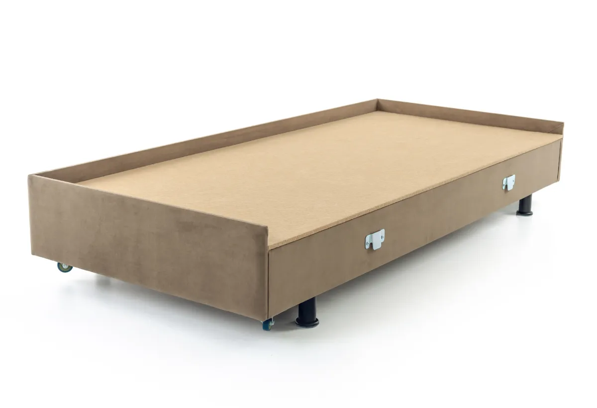 Преимущества перед обычными кроватямиКровать Спрингбокс — это идеальное решение для тех, кто ценит комфорт, функциональность и долговечность. Она специально разработана для людей, которые ищут высококачественную мебель, способную выдерживать высокие нагрузки и обеспечивать максимальный уровень удобства. Модульность: С помощью специальных зацепов кровать легко соединяется в полноценную двуспальную кровать, что делает ее универсальной для различных жилых пространств. Мобильность: Благодаря металлическим ручкам и колесным роликам, кровать легко перемещается, что особенно удобно при перестановке мебели или переезде. Прочность и долговечность: Каркас из соснового бруска и основание из МДФ обеспечивают высокую устойчивость к нагрузкам и влажности, что делает кровать долговечной и надежной.