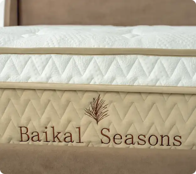 Особенности серии матрасов Baikal SeasonВдохновитесь атмосферой золотой осени на Байкале с матрасом Baikal Season Осень – идеальным сочетанием ортопедической поддержки и мягкого комфорта. Этот матрас создан для тех, кто ценит баланс между жесткостью и нежностью, как переход от теплого лета к прохладной осени. Дизайн и эстетика Серия Baikal Season – это дань величию Байкала, воплощенная в дизайне. Неоклассические мотивы, переплетающиеся с природными элементами – тайгой, горными силуэтами и отпечатками кедровых ветвей – создают уникальную атмосферу в вашей спальне. Чехол из дизайнерского трикотажа с технологией Cloud и ткани жаккард подчеркивает изысканность и натуральность коллекции.