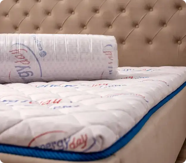 Стильный и функциональный дизайнПредставляем вам новый матрас, который сочетает в себе стиль и функциональность. Его уникальный чехол, выполненный из трикотажа Energy Day, стеганого на объемном синтепоне, и жаккардовой рогожки голубого цвета, придает матрасу эстетичный вид и обеспечивает долговечность. Такое сочетание материалов делает его идеальным дополнением к любому интерьеру.